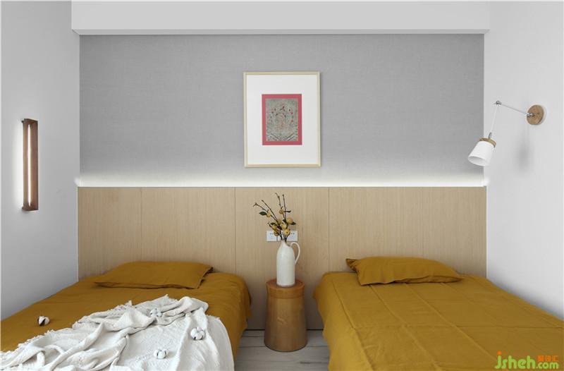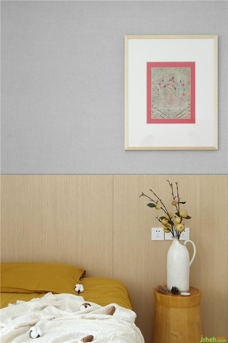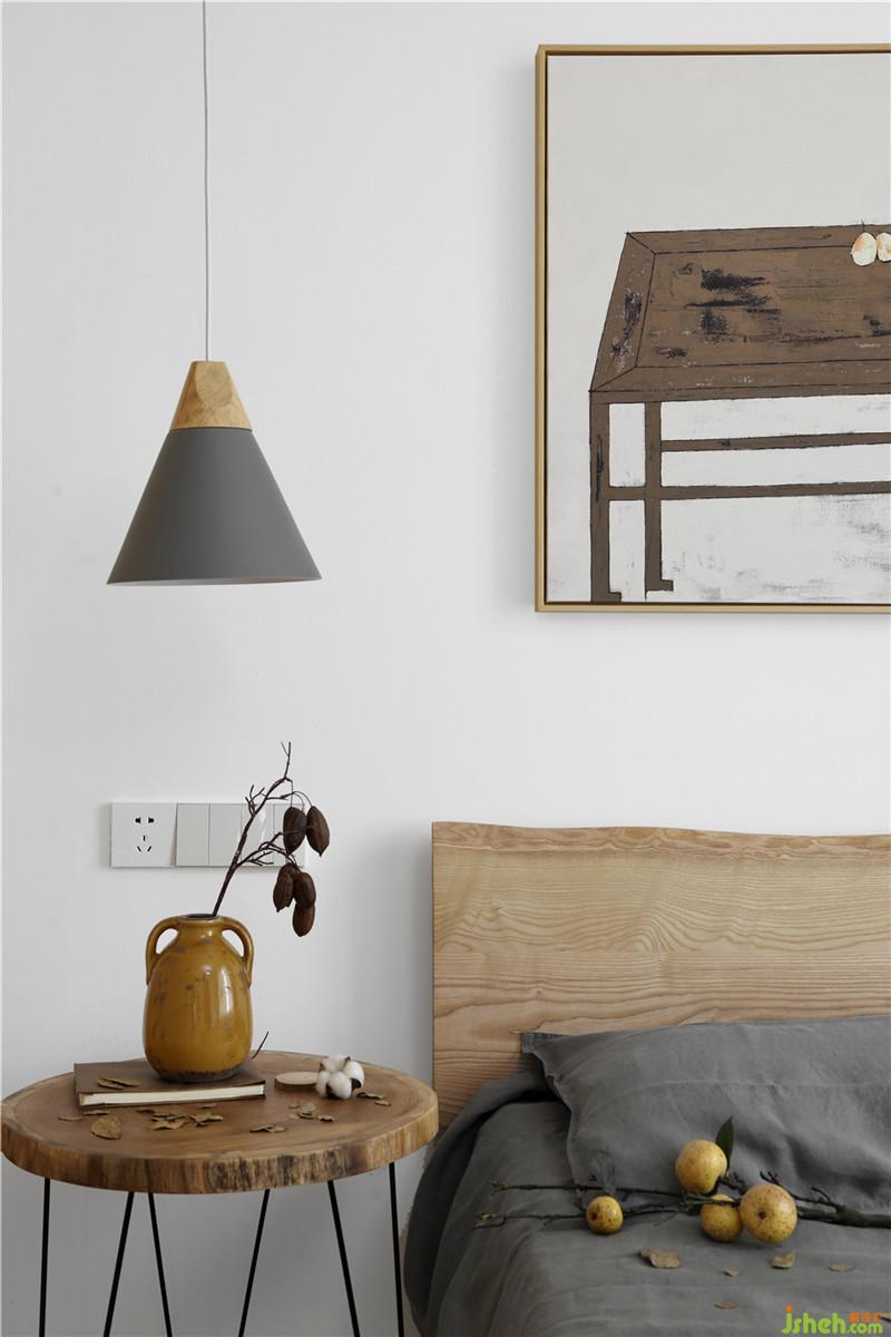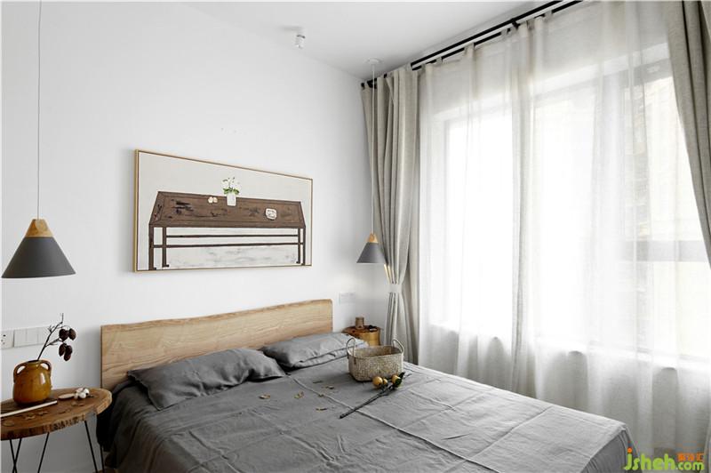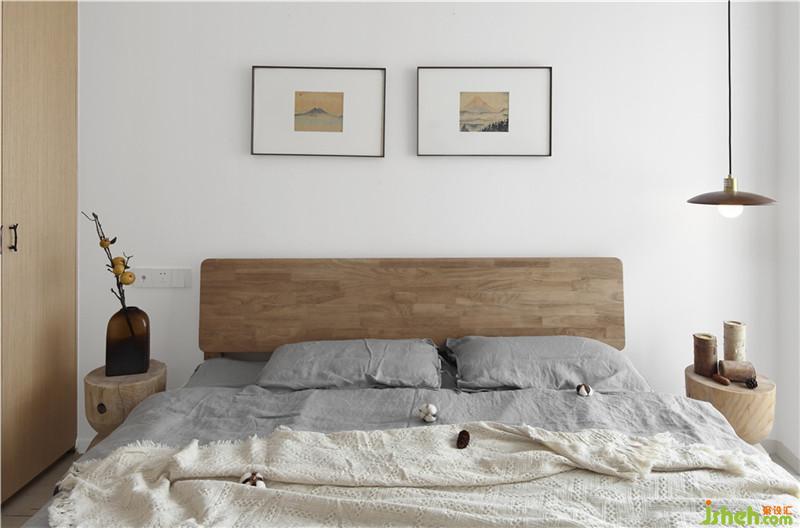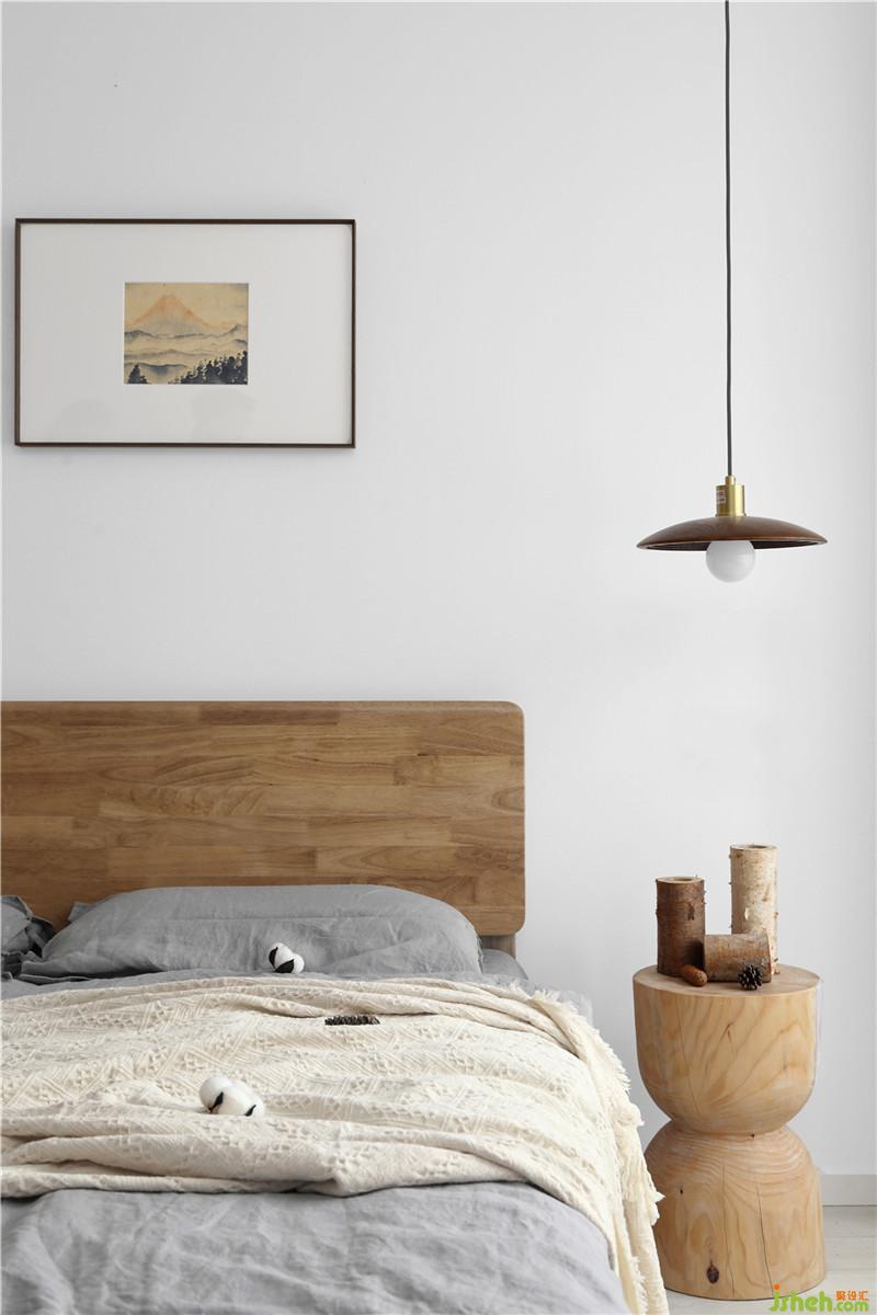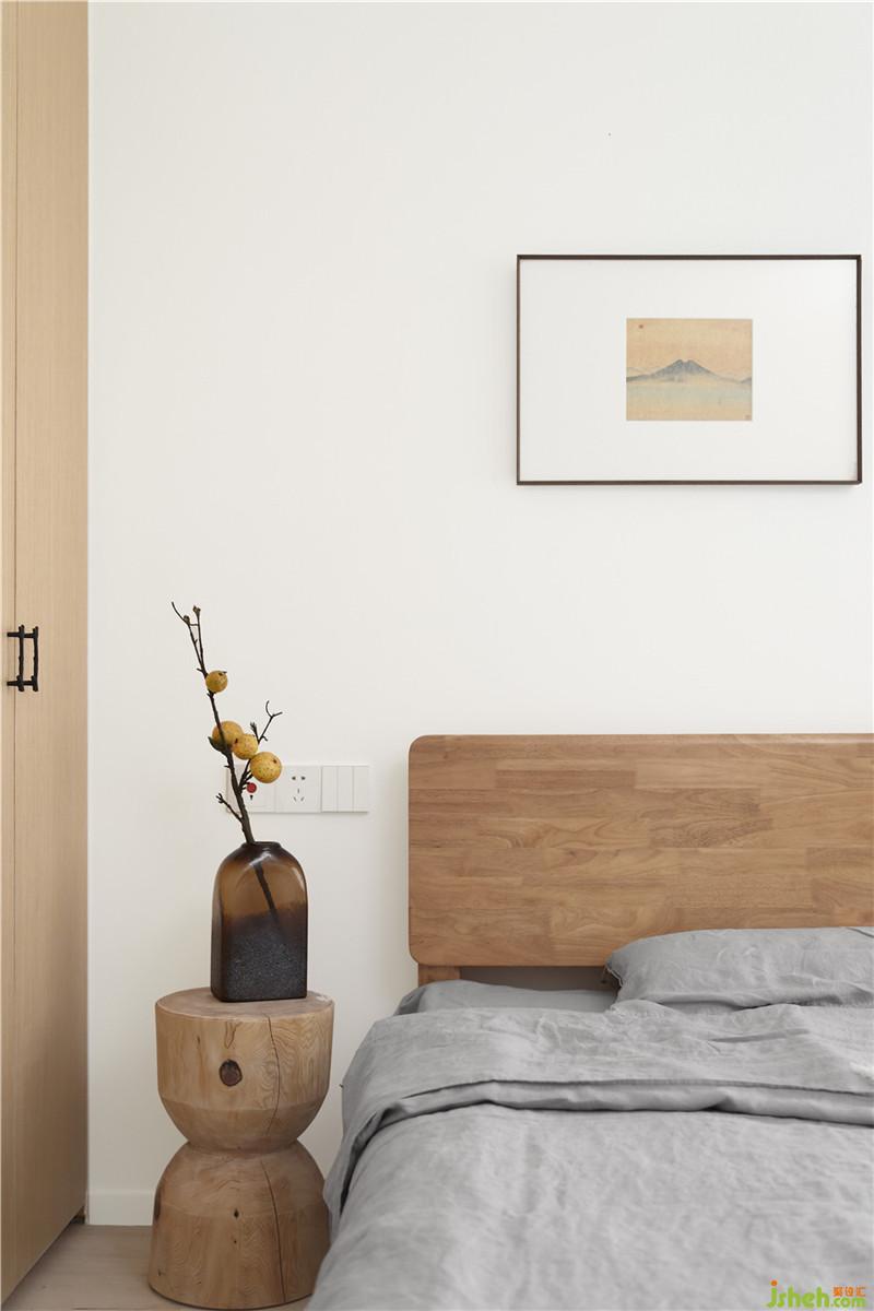 臥室空間,素白的墻面與木色的陳設體現(xiàn)著主人回歸到本來的清靜之心。室內設計師
