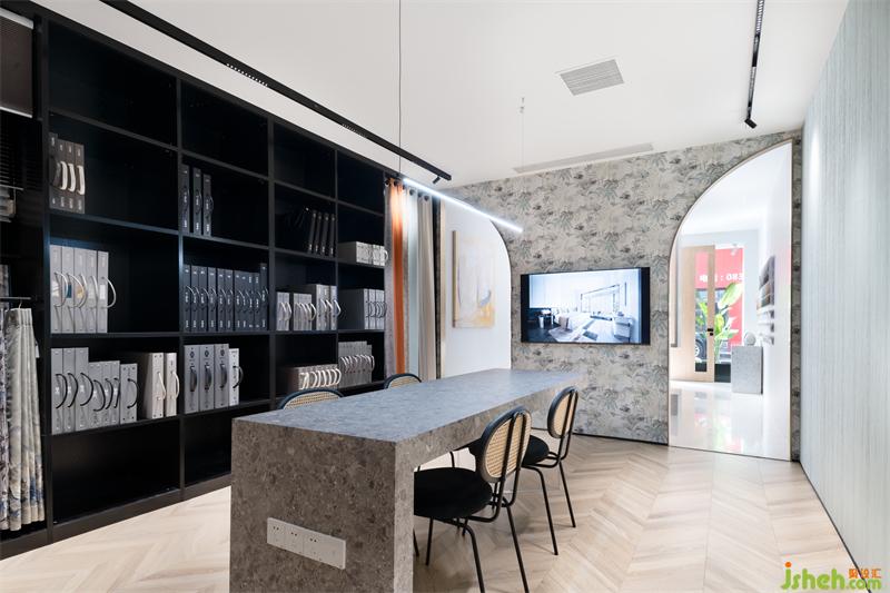 把窗簾布藝區(qū)將選料區(qū)和洽談區(qū)二合一