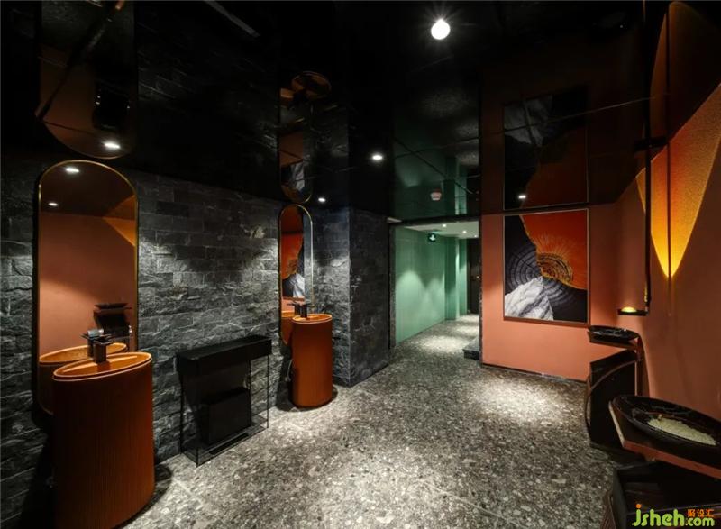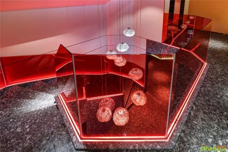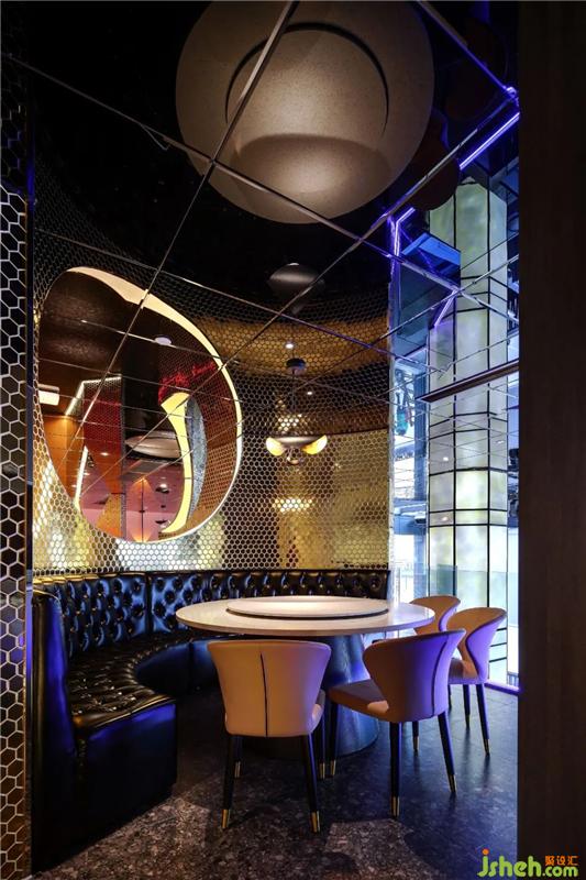 在空間中,有許多有意思的打卡區(qū):進門水吧臺的星空頂、玻璃扶手的旋轉(zhuǎn)樓梯、二樓包間區(qū)等等;自帶打卡點的門店,會帶來許多來自朋友圈的免費流量燒烤裝修設計。