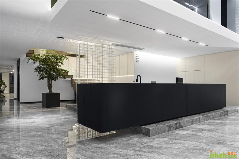 設計師以黑白灰色為空間主調,用簡練的筆法塑造開闊的空間,營造出簡約淡雅的待客空間。接待前廳設計將力學美感、視覺張力及照明結合在一起,作為功能部分融入公共空間。整個辦公區(qū)采用了人臉識別、聲控系統(tǒng)、智能會議系統(tǒng)、背景音樂、智能燈光等為國際化創(chuàng)新辦公環(huán)境加持、傳達了與時俱進的精神。