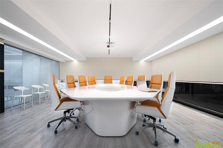 二層空間內(nèi)分布不同辦公室以及會議室,整體簡約的風格搭配黑白灰元素,彰顯整個空間的高級感。簡單的色塊和定制軟裝分隔出的空間,讓空間沒有強烈的區(qū)域功能感,身處于其中放松、自在,讓每一個到訪的人都能在進入空間時感覺極致的純粹,將整個設計場景升華為經(jīng)典藝術(shù)。
