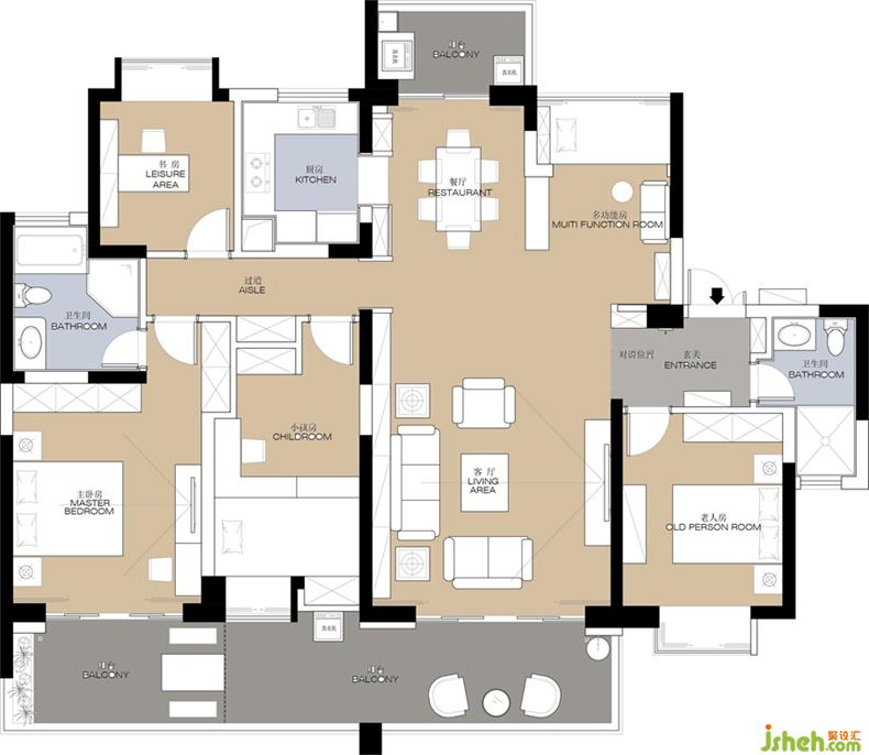 次臥主要是給家里老人家居住,在風(fēng)格上與主臥基本保持一致,舒適而寧靜,尤其是床頭的掛畫,選擇更加淡雅的風(fēng)格,樸實(shí)無華,符合老人家喜靜的性格。