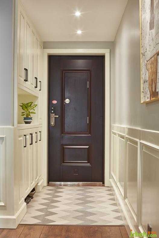 用不同材質(zhì)紋理,將門道與其他區(qū)域區(qū)分開,一體式的鞋柜與空間的完美融合,護墻板的延伸,讓區(qū)域之間得到一個很好的過渡。