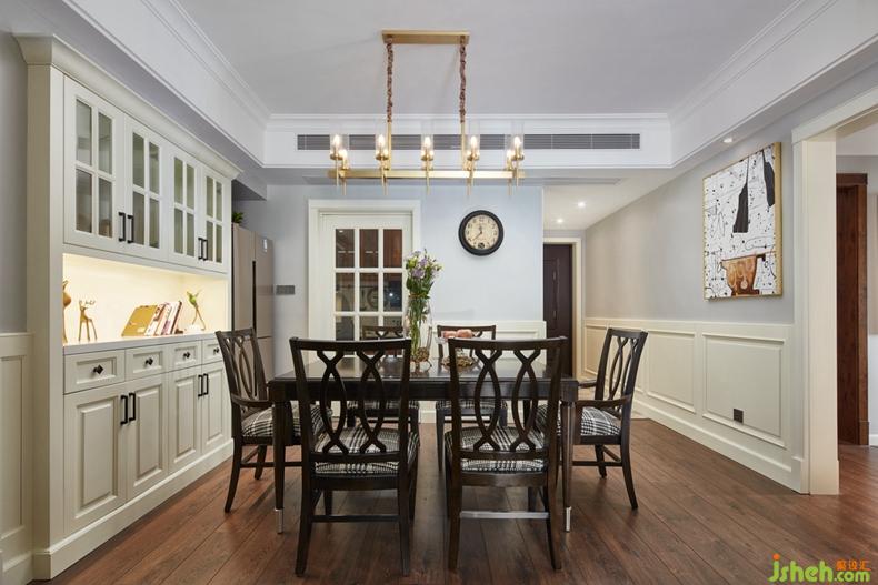 客廳采用嵌入式石膏吊頂,搭配精致的吊燈,營(yíng)造出一種溫馨、浪漫的氛圍。舒適的皮質(zhì)沙發(fā),風(fēng)格鮮明的裝飾畫(huà),都讓美式風(fēng)格得到進(jìn)一步的彰顯。