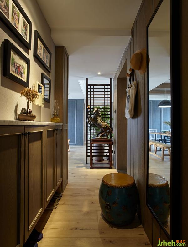 傳統(tǒng)的門廳,必備的鞋柜。整個(gè)入戶玄關(guān)墻面墻板鞋柜木工油漆全部現(xiàn)場(chǎng)純手工制作。