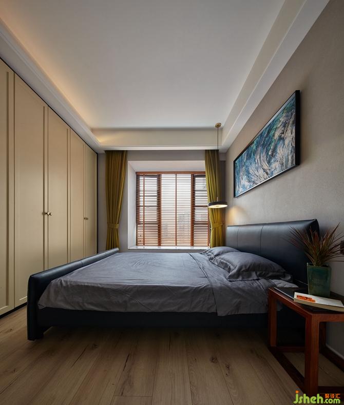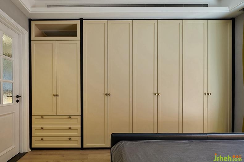 不要軟包不要護(hù)墻板,我只要大大的衣柜及舒適的床;奶黃色的烤漆柜門(mén)看著很溫馨,兩口子的衣物全部裝下。