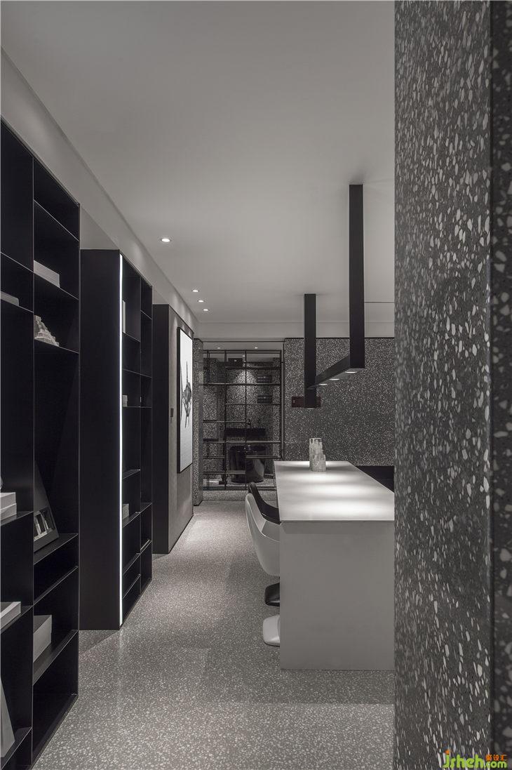 大面積的水磨石運用酷勁十足,強烈的原始?xì)庀⒔o這個空間帶來個性而又成熟的獨特魅力?!八挥芯裥缘囊幻妗保瑮钚菫I說,“令你感覺腳踏實地,歸于寧靜”。