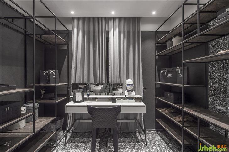 在敞開的整體空間中,用鐵格杉為衣帽間和衛(wèi)浴間做靈活的區(qū)域分割,設(shè)計的魅力既體現(xiàn)在縝密的頭腦又體現(xiàn)在機敏的應(yīng)變能力。
