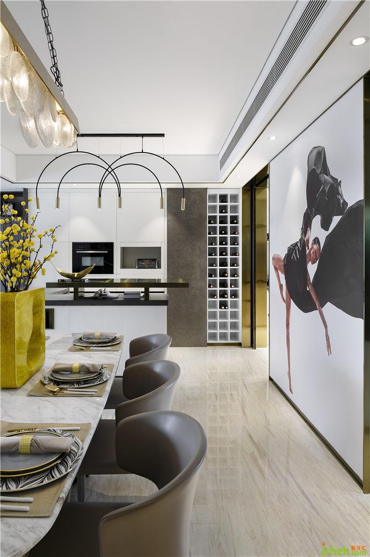 極具質(zhì)感的金屬墻面搭配魚肚白大理石的溫潤(rùn)含蓄,是空間里的最佳CP。