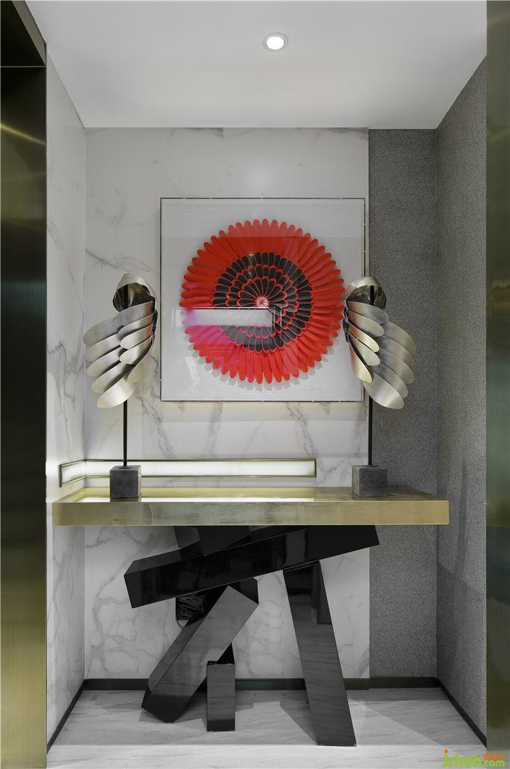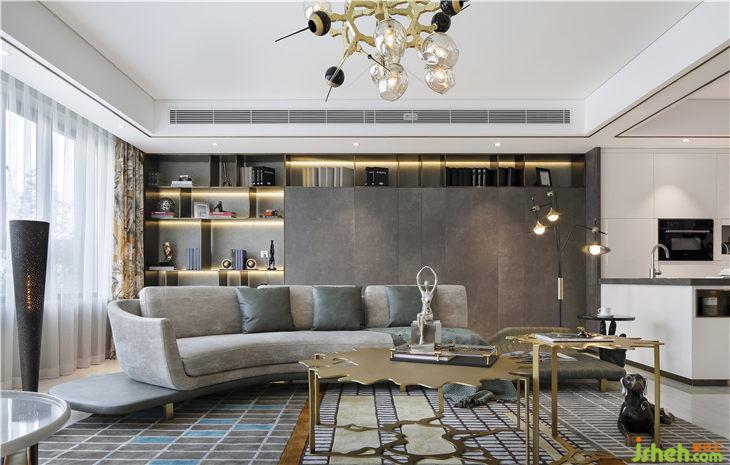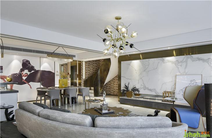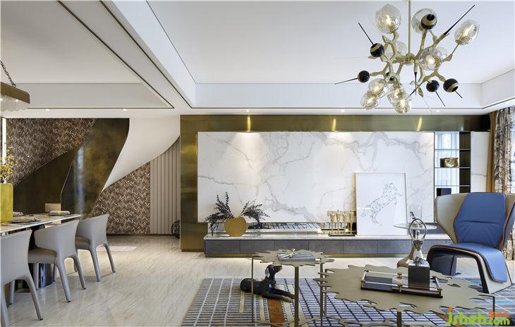 空間中素雅白,金色勾勒,精致的線條,貫穿整個(gè)空間,增添空間層次。金色的高低茶幾組合,好似要飄落到地上的兩片秋葉,無疑成為空間的亮點(diǎn)。