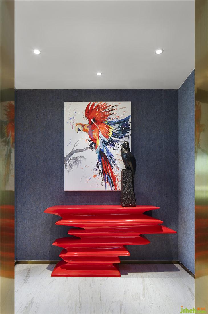 即便是一個(gè)西裝革履的紳士,回到家仍讓要面對(duì)自己的家人,不希望生活過(guò)平淡無(wú)味,又不必甜得發(fā)膩。因?yàn)閻芤馐撬羁释纳莩?,愈豐盛愈安逸。單椅上的一抹藍(lán),靈動(dòng)而鮮明,仿若在空間跳動(dòng),不是突然的打擾,是一筆點(diǎn)睛。