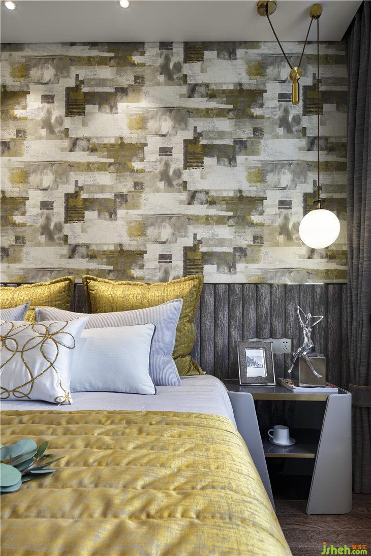 幾枝黃枝椏留下秋的模樣,與極具質(zhì)感的灰色相搭,猶如夜與光,同墻壁夢(mèng)幻的斑駁色一起,在這被秋天親吻過(guò)的房間里,為甜美的夢(mèng)境帶來(lái)詩(shī)意。