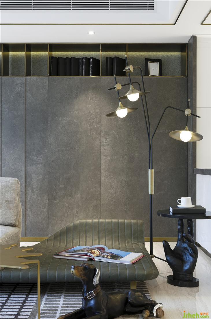 雅致的空間配色與設(shè)計(jì)相得益彰,沉穩(wěn)內(nèi)斂的灰色主調(diào)與質(zhì)感墨綠搭配,多了幾分質(zhì)感與奔放。自帶摩登氣質(zhì)的落地?zé)?,極具擲地有聲的存在感。
