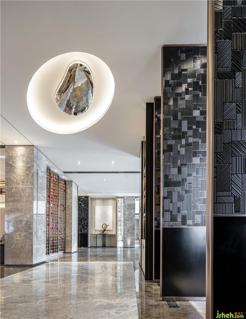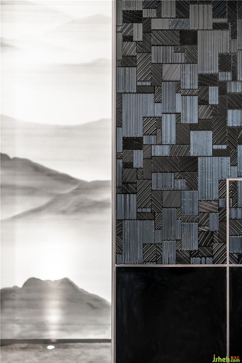 墨汁滴落在宣紙所暈染出的墨點(diǎn)效果,于空間中自由舞動(dòng),墨滴滴落的瞬間被生動(dòng)捕捉,繼而生長(zhǎng)成為空間氣質(zhì)的一部分。生活源于藝術(shù)之美,一筆一墨繪成一道風(fēng)景,深與淺的暈染,賦傳統(tǒng)的“意”于現(xiàn)代的“形”,靈動(dòng)與沉寂, 與空間對(duì)話,與時(shí)間共舞,融合,共生。