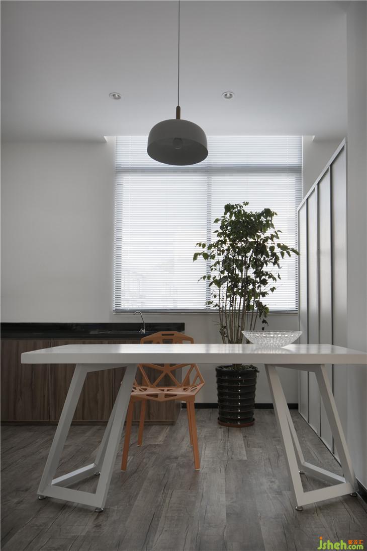 由于建筑結構的限制,入口處需經過一處較狹長的通道,索性將門口及通道墻面做成深灰色,營造一點神秘感,進入室內豁然開朗,墻面,天花,家具整體白色調。
