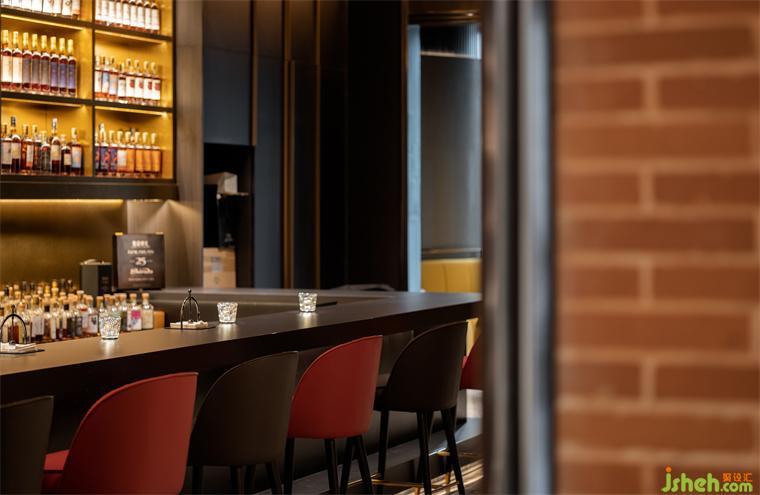 空間整體以來自全球各地的威士忌為背景,餐廳設(shè)計在結(jié)合簡約線條鍛造簡約而貴族奢華的空間體驗,暗綠、深褐、深銅色等暖色系的大量運用,使得場域極富時尚及穩(wěn)重氣息。