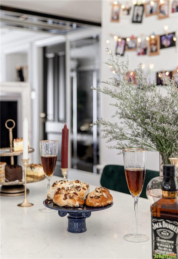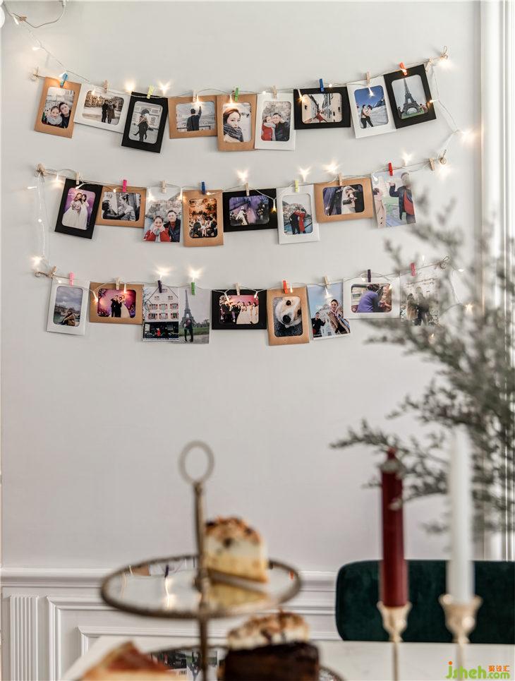 在餐廳,我們?yōu)闃I(yè)主制作裝訂了一面照片墻,業(yè)主喜愛旅游,這里,很多兩人共同經(jīng)歷的精彩難忘的瞬間都被記錄,幸福的點滴蔓延在每個角落。