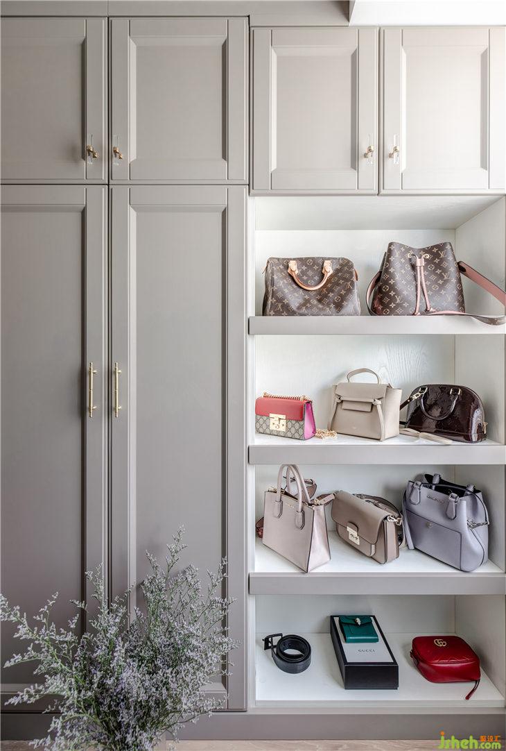 這組柜子因?yàn)楸澈笥悬c(diǎn)柱結(jié)構(gòu),所以450mm深度空間正好可以集合各種名牌包包。