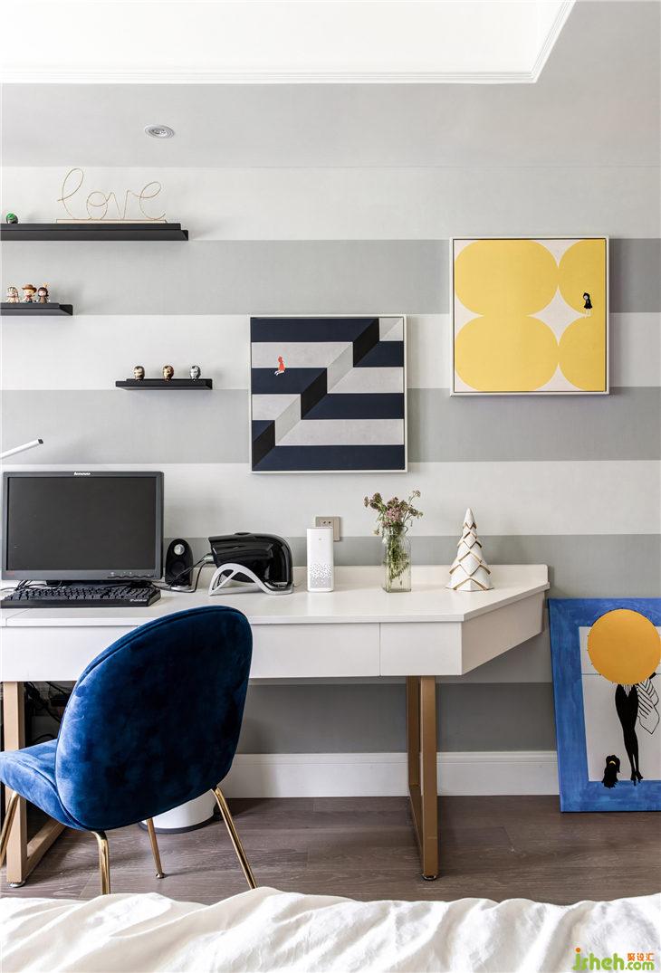 這里空間雖小,但一樣有著大大的儲(chǔ)藏空間,打開(kāi)房門(mén),是兩個(gè)整面的儲(chǔ)物柜,書(shū)桌也是很寬很長(zhǎng),防止桌角對(duì)外,會(huì)有一定的安全隱患和視覺(jué)壓抑,我們將桌角斜角處理。