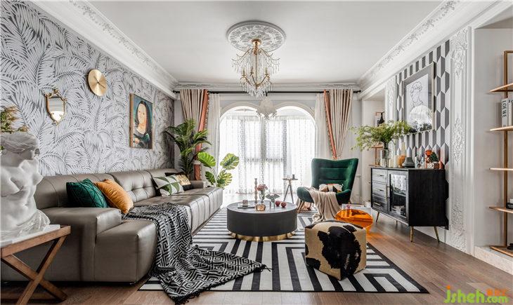 客廳空間的整體氛圍相對(duì)于餐廳,更顯沉穩(wěn),色調(diào)以灰白黑為主,沙發(fā)選用了淺暖灰色皮質(zhì)沙發(fā),造型現(xiàn)代干練,材質(zhì)經(jīng)久耐用,局部軟裝進(jìn)行跳色搭配,暖橙與墨綠在抱枕、窗簾、單人絨布沙發(fā)、亞克力雜志架以及裝飾畫(huà)上交相輝映,在這現(xiàn)代法式的基調(diào)上融入了新鮮活力,造型古典優(yōu)美的水晶吊燈,仿佛一個(gè)典雅的公主,扭動(dòng)著她那婀娜的身姿,剔透柔美。
