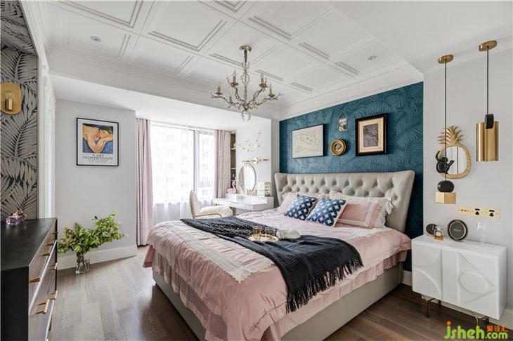 床背景內(nèi)嵌的壁紙,則與入戶玄關呼應了起來,床頭組合畫有現(xiàn)代抽象的,也有復古精致的,還有業(yè)主自己的照片與金屬掛框進行組合搭配,用心而又獨特。