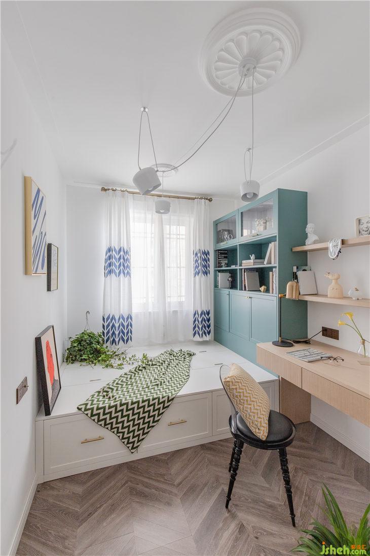 父母只是偶爾過來小住,次臥還是以功能性為主,榻榻米有效增加了空間的存儲(chǔ)量,同時(shí)還兼具書房的功能,現(xiàn)在是父母居住,等有了小寶寶,亦可以作為兒童房更迭使用。