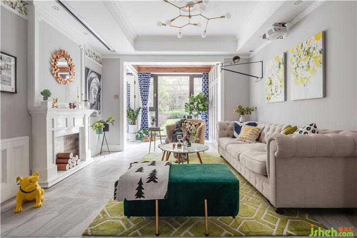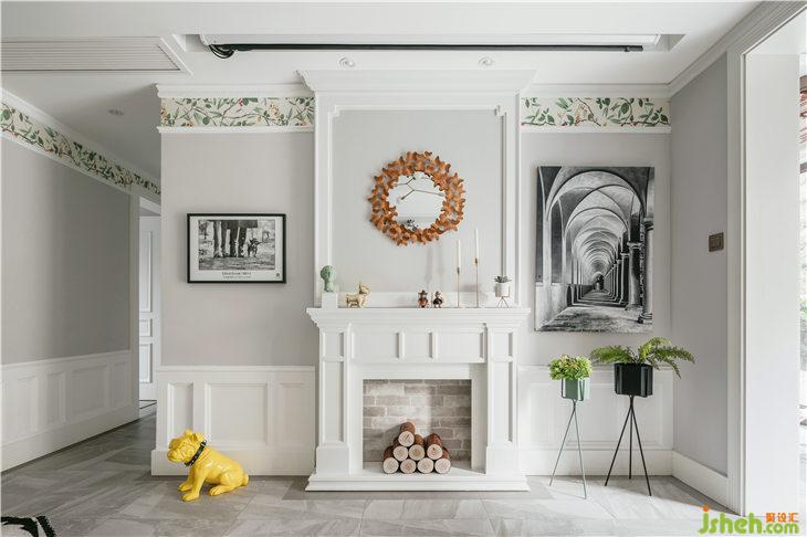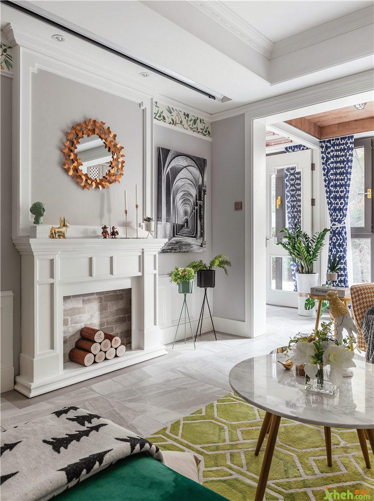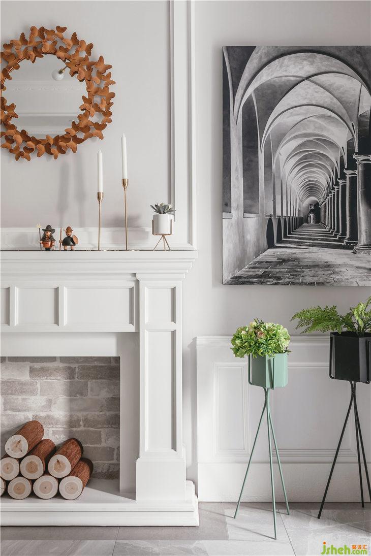 客廳我們取消了電視機,用壁爐造型作為主背景,保留經(jīng)典美式元素,原電視機功能我們換成暗藏投影(ps:這種做法既能保證客廳的顏值,又能滿足功能性)