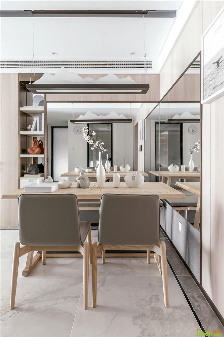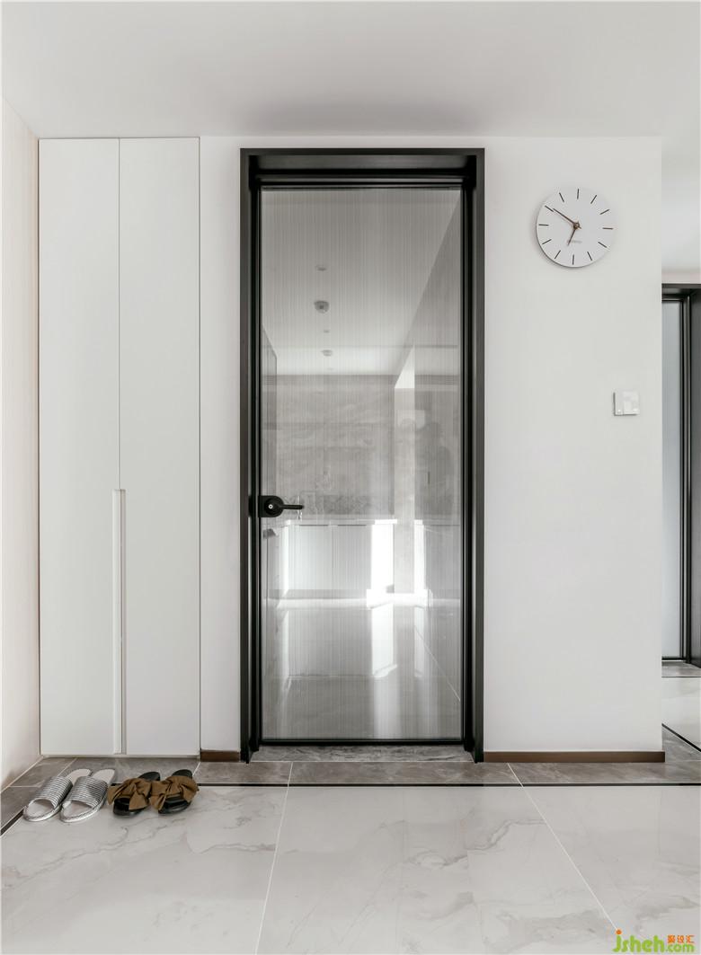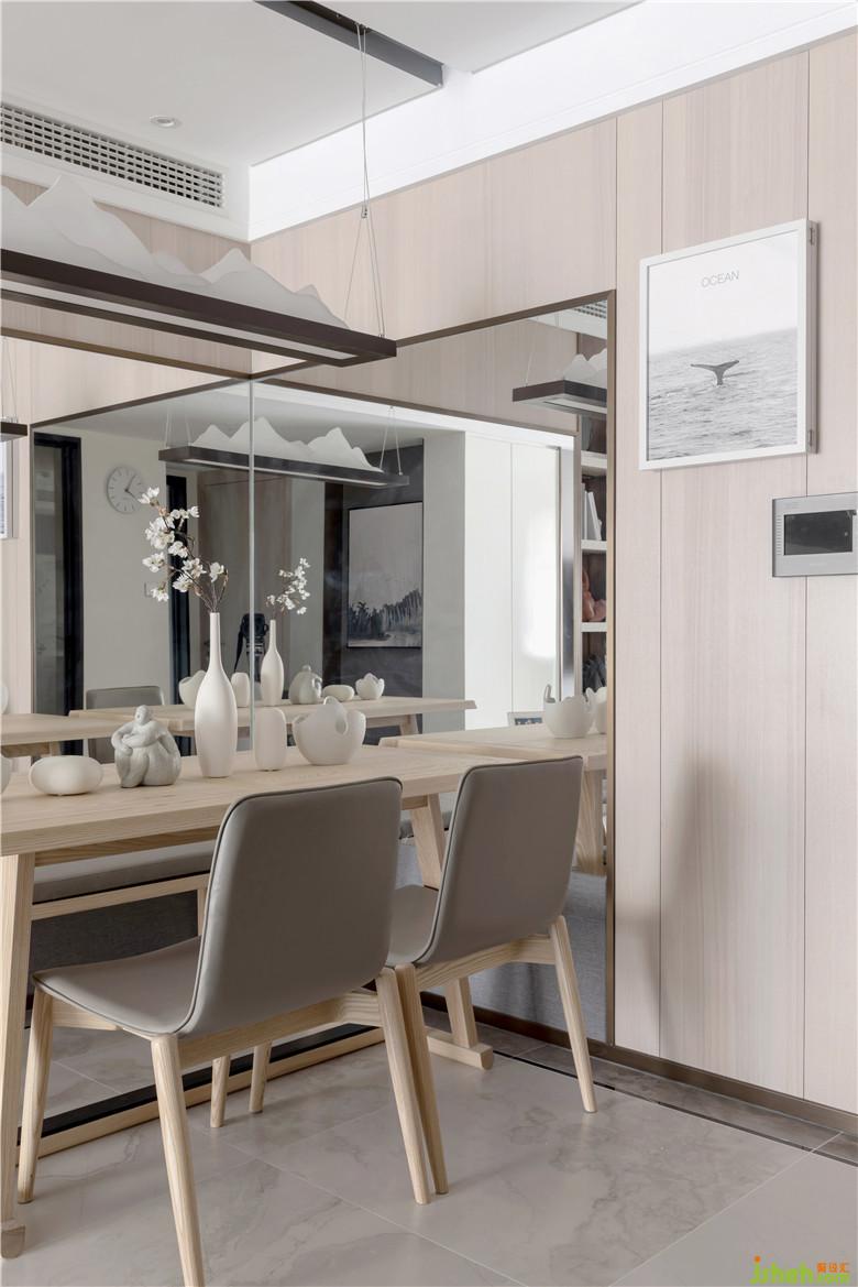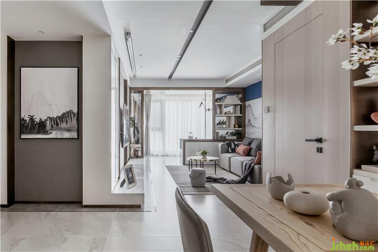 溝通幾輪,室內(nèi)設(shè)計師定稿了無生活陽臺設(shè)計布局,男主平時用書房比較多,他想在客廳和主臥都能有融合性的辦公空間,所以我們做了三個開放式的書房