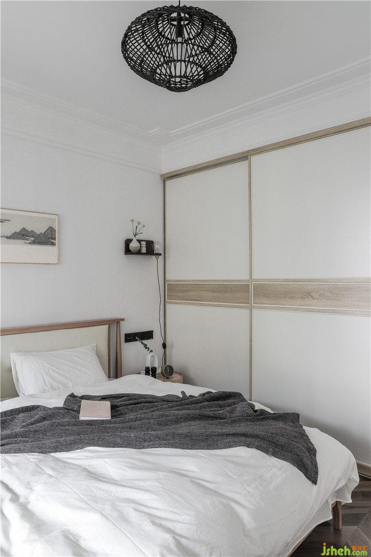 爺爺喜歡閱讀,床頭的一側(cè)我們?cè)O(shè)計(jì)了吊燈,床頭柜則是開敞式的,如同一個(gè)小小的書架。