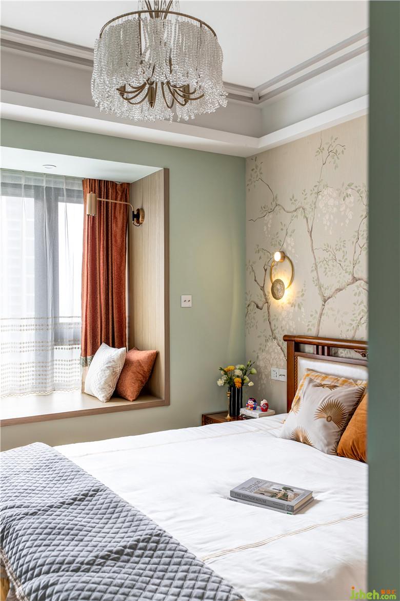 床頭壁燈也是別具復(fù)古特色的,搭配花鳥壁紙,意境悠長。