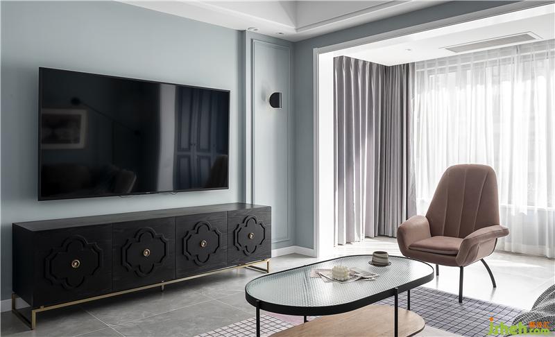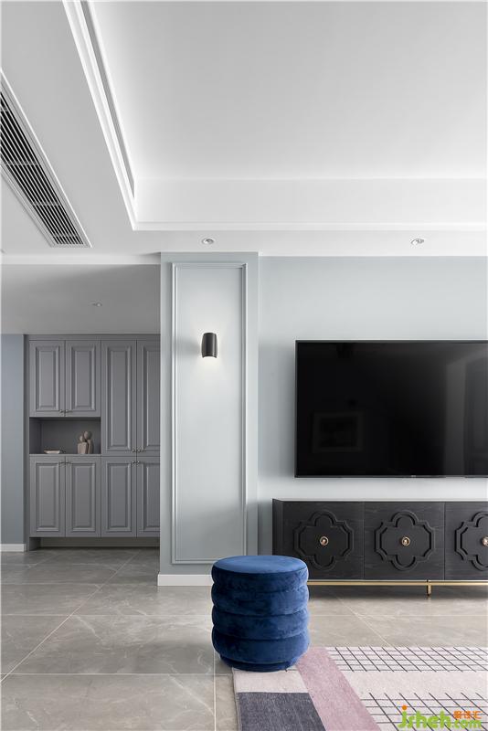 電視墻同樣以簡潔的石膏線為主,結(jié)合深色的電視柜,更為和諧。綠植的點(diǎn)綴也是一大亮點(diǎn),為這個(gè)家?guī)砹藷o限的生機(jī)與活力。