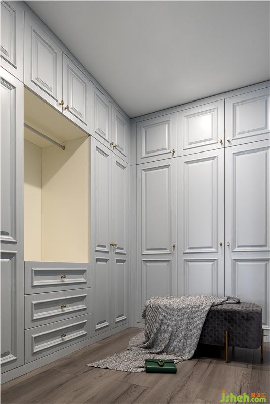 主臥連接著衣帽間,動線設(shè)計方便,白色衣柜款式美觀大方且儲物空間驚人。女主人說自己特別不喜歡生活用品裸露在外,所以收納需求較大。