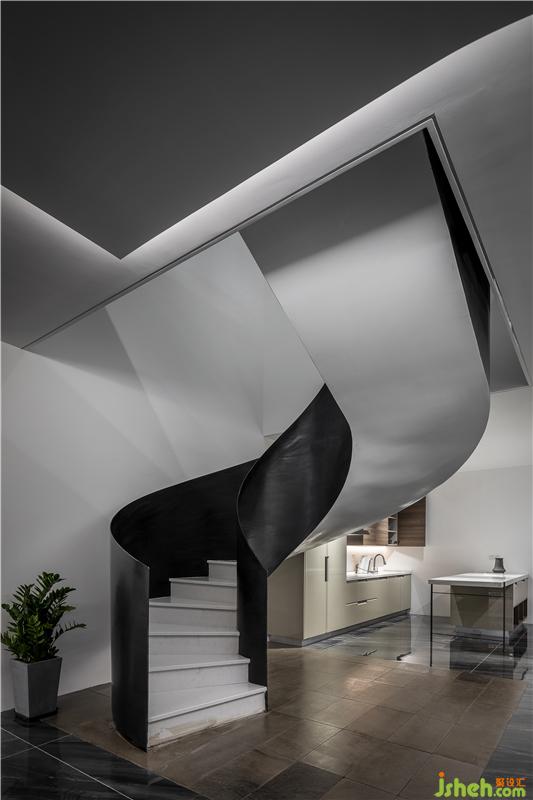 高顏值的旋轉(zhuǎn)樓梯,流暢的線條,高級(jí)中又透著童趣;而這個(gè)樓梯的設(shè)計(jì)靈感便來(lái)自兒童樂園的滑滑梯。