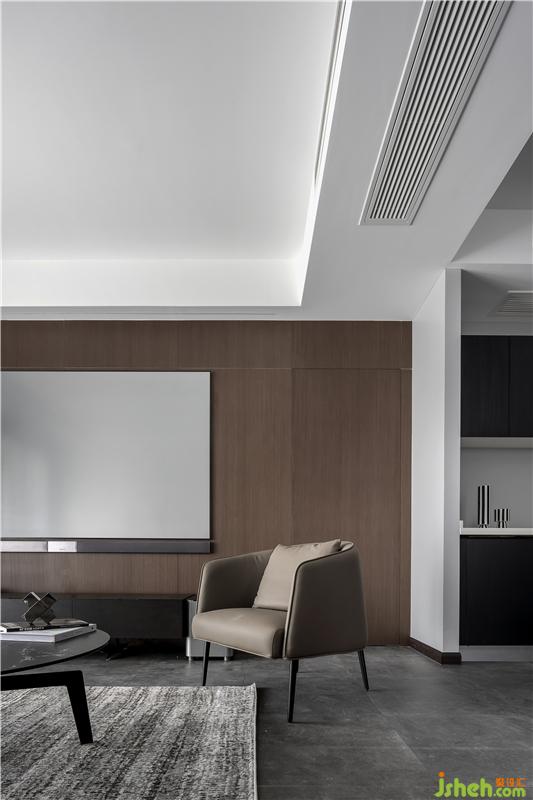 業(yè)主喜歡深色系時(shí)尚簡(jiǎn)約風(fēng),所以房屋在整體搭配上介于黑白灰棕之間,加以少部分明亮色彩的軟裝點(diǎn)綴,最終呈現(xiàn)出更好的視覺(jué)和居住體驗(yàn)效果。設(shè)計(jì)師還為屋主家的小貓量身定制了貓柜子,電視墻隱形門(mén)的設(shè)計(jì)也讓整個(gè)客廳更加通透出彩。