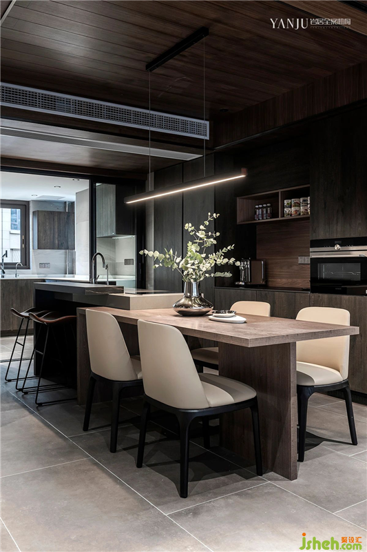為了整體風(fēng)格的統(tǒng)一,采用了全套嵌入式冰箱與蒸烤箱。
