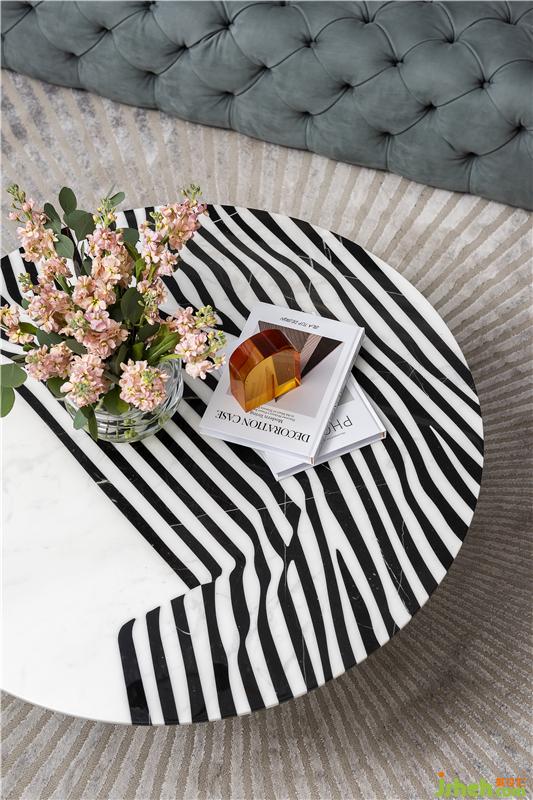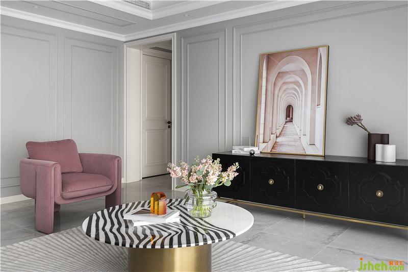客廳的風格和諧大氣,流暢的線條簡約干凈,墨綠色沙發(fā)搭配斑馬紋茶幾,給空間增添了一份藝術色彩。