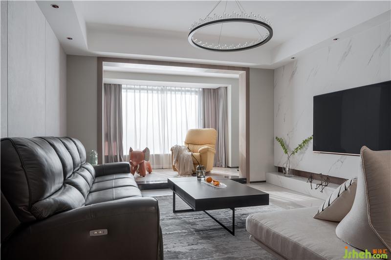 飾面板沙發(fā)背景墻耐看耐用,搭配綠植讓空間變得更有活力。男女主人都比較喜歡看電視,用到沙發(fā)的時(shí)間會比較多,功能性按摩沙發(fā)是不二的選擇,既大氣又舒適。