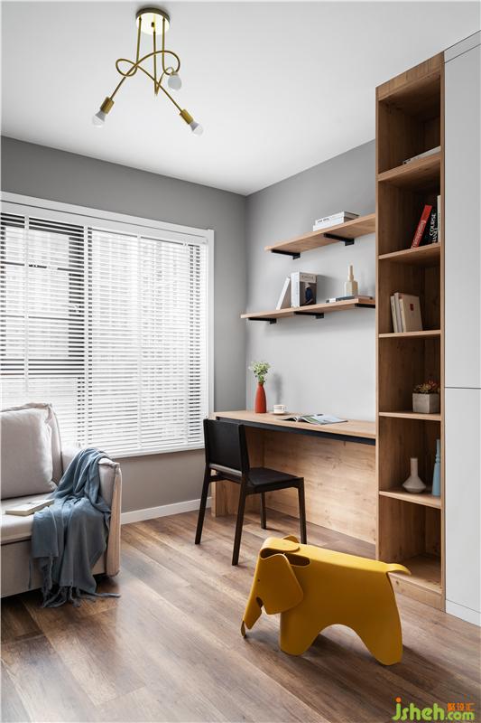男女業(yè)主都有閱讀的習(xí)慣,獨立書房是必不可少的。陳列書架采用半開放設(shè)計,收納和展示功能兼具。擺上小沙發(fā),書房功能不再單調(diào)。