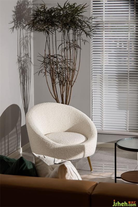 白色單人沙發(fā)放置在角落,一抹綠意俏皮地藏匿在身后。此時(shí),撣去所有的紛擾嘈雜,去感受舒緩,去釋放壓力,如同徜徉在城市中的秘境花園。