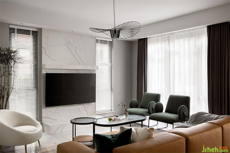 “棕+綠”的自然系配色,既彰顯典雅,又凸顯質(zhì)感,棕色的沙發(fā)除了高顏值以外,搭配也不易過(guò)時(shí)。墨綠色的加入,就像是在棕褐色的大地上,驀然出現(xiàn)一株株蒼勁的松柏,讓人眼前一亮,豁然開朗。