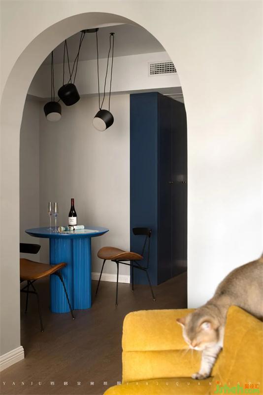 The design of the arch allows the light source to be fully introduced into the restaurant, and the entire house uses a large number of golden, blue, and yellow elements that the owner likes, which is visually distinct and not excessively dazzling.