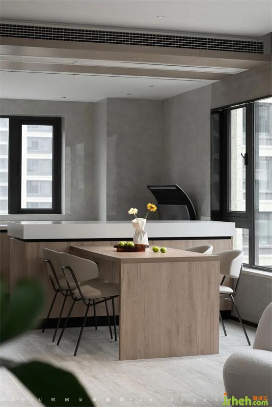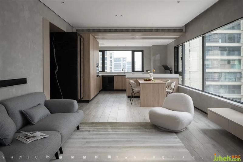 客廳、餐廳、廚房一字排開,看似在同一空間,卻又劃分明確。
