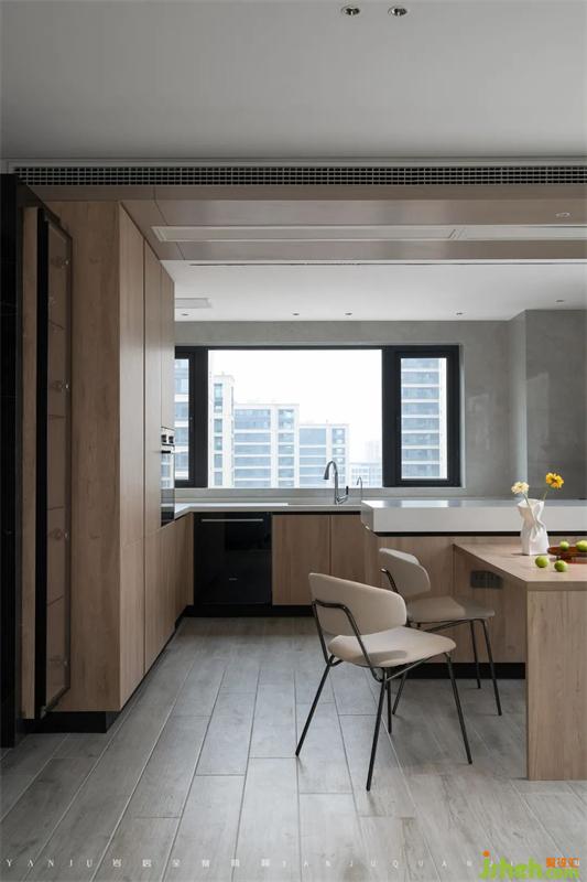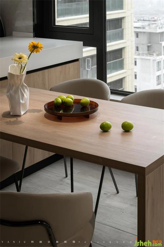 內(nèi)包進(jìn)來的陽臺做成了全落地窗的形式,一來優(yōu)化采光,二來方便公共區(qū)域的通風(fēng)。