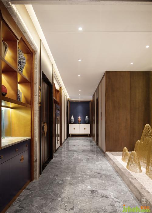 以現(xiàn)代材料呈現(xiàn)造型形態(tài),從家具、色調到陳設,兼具著東方雅致特質,也保持著細節(jié)美感。當東方美學與現(xiàn)代設計融合于此時,空間中更有藝術感。