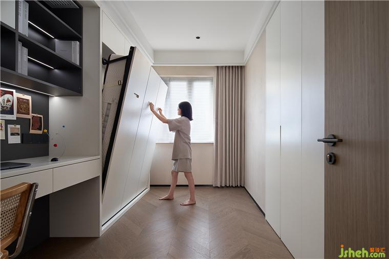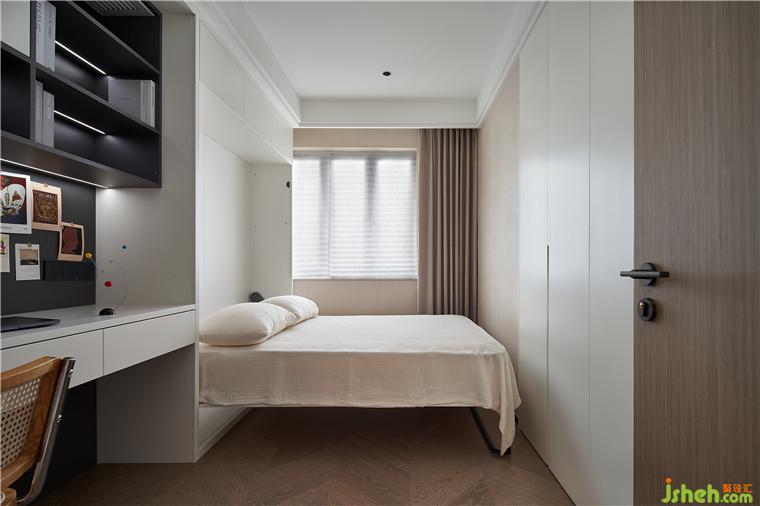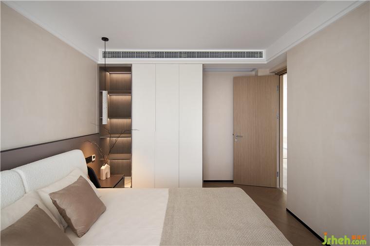 3.主臥向功能房借位分隔出衣帽間,滿足業(yè)主日常衣物、鞋包的收納,精致生活更進一步: