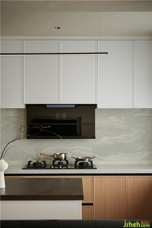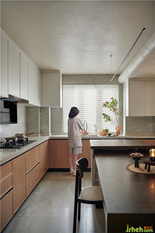 1.廚房與餐廳合并做開放式設計,實現(xiàn)LDK一體化,整個餐廚與客廳能夠形成互動交流,多一分家人備餐之間互動的溫情;