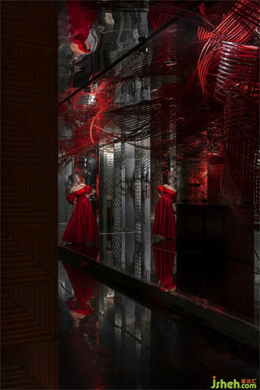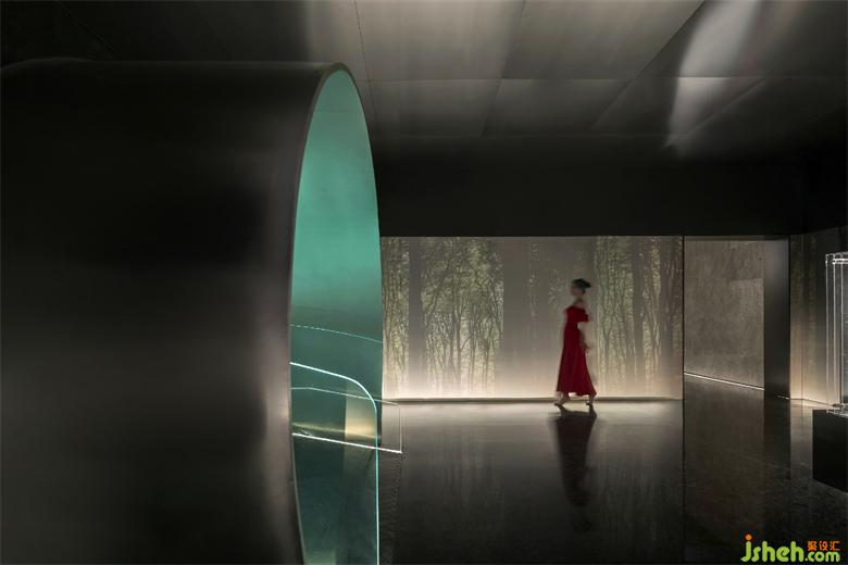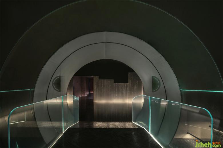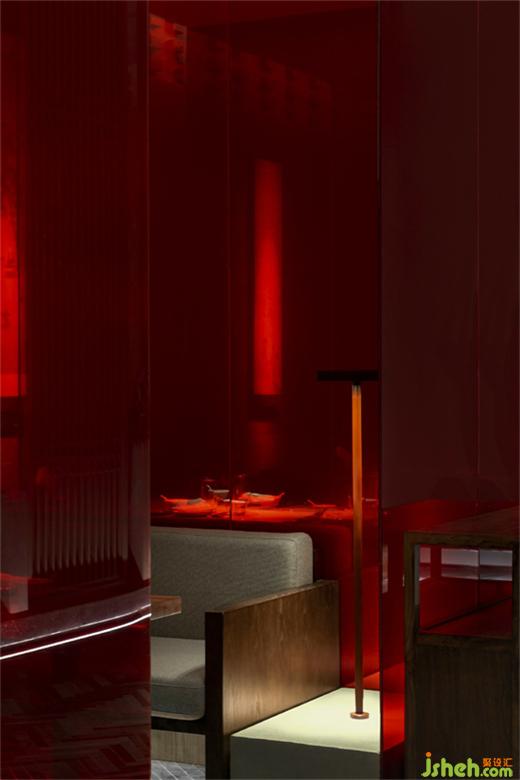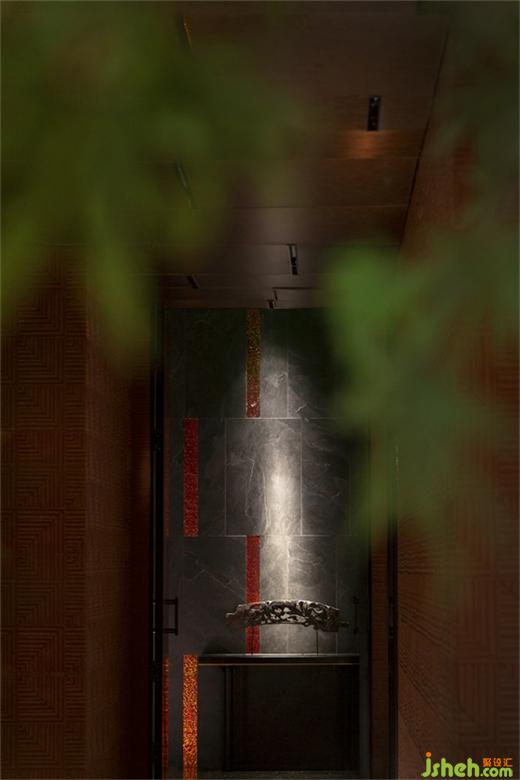 The designer adopts the classic moving scenery technique of Chinese garden on the design of the storefront signboard. The winding black brick path and green pine rockery contrast finely with each other, so that diners can follow the moving line gradually to be immersed in the scene atmosphere of the restaurant. The end is the restaurant entrance made of glass bricks with a moon-gate-shape storefront signboard. Thanks to creative combination of Chinese and Western design style, the novel techniques is lifted to a new height.