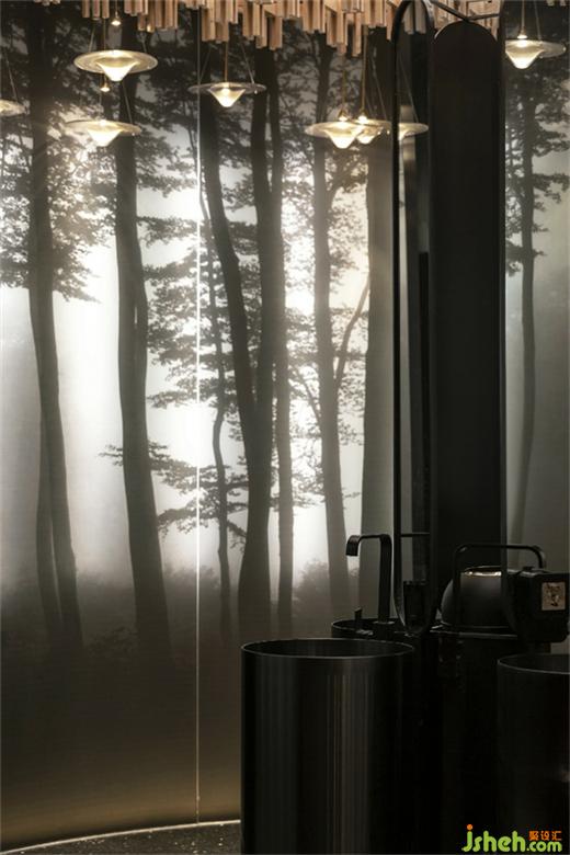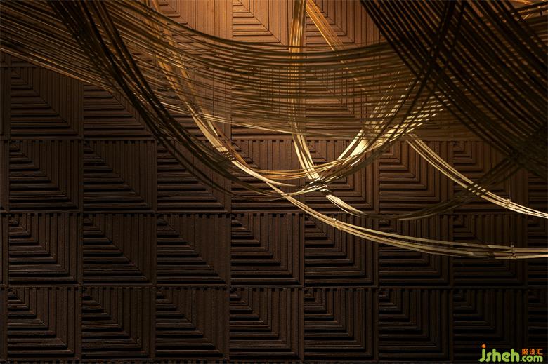 主要材料:金磚、大理石、仿銅不銹鋼、玻璃磚、藝術(shù)涂料、夾絲玻璃、燒木+瓦、回字形紅磚、竹藝裝置