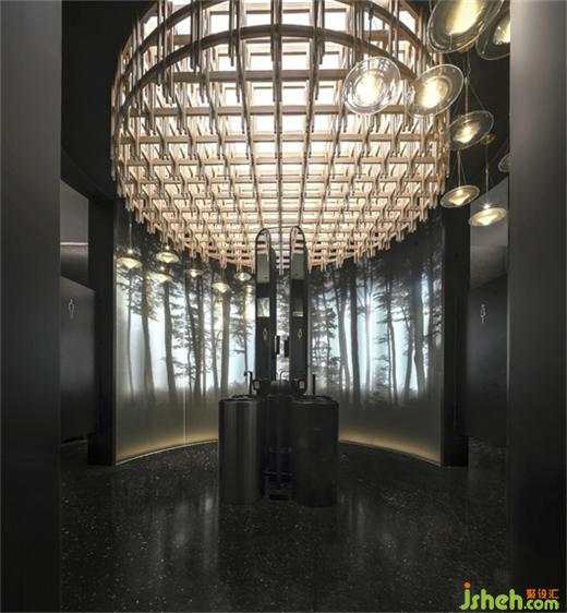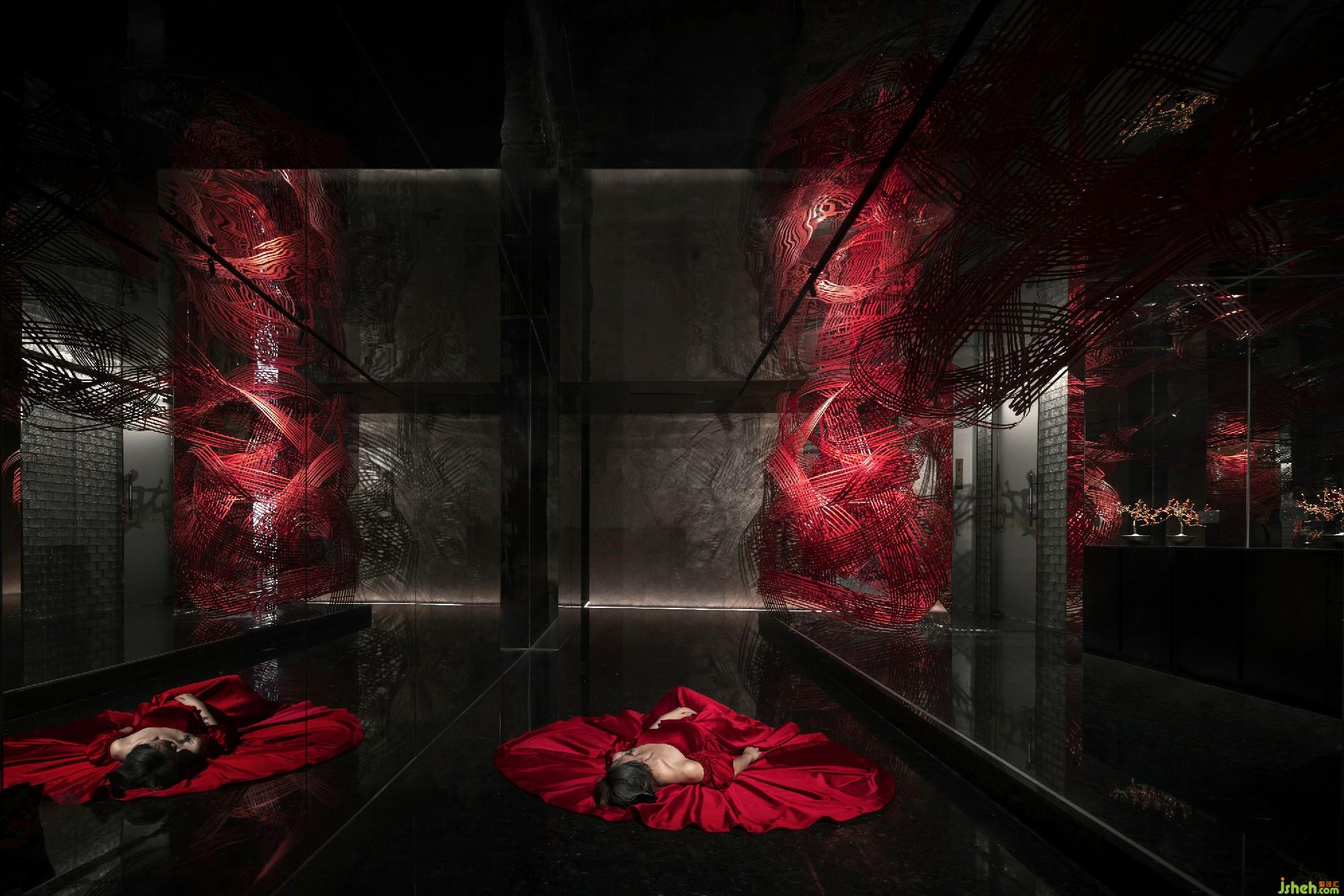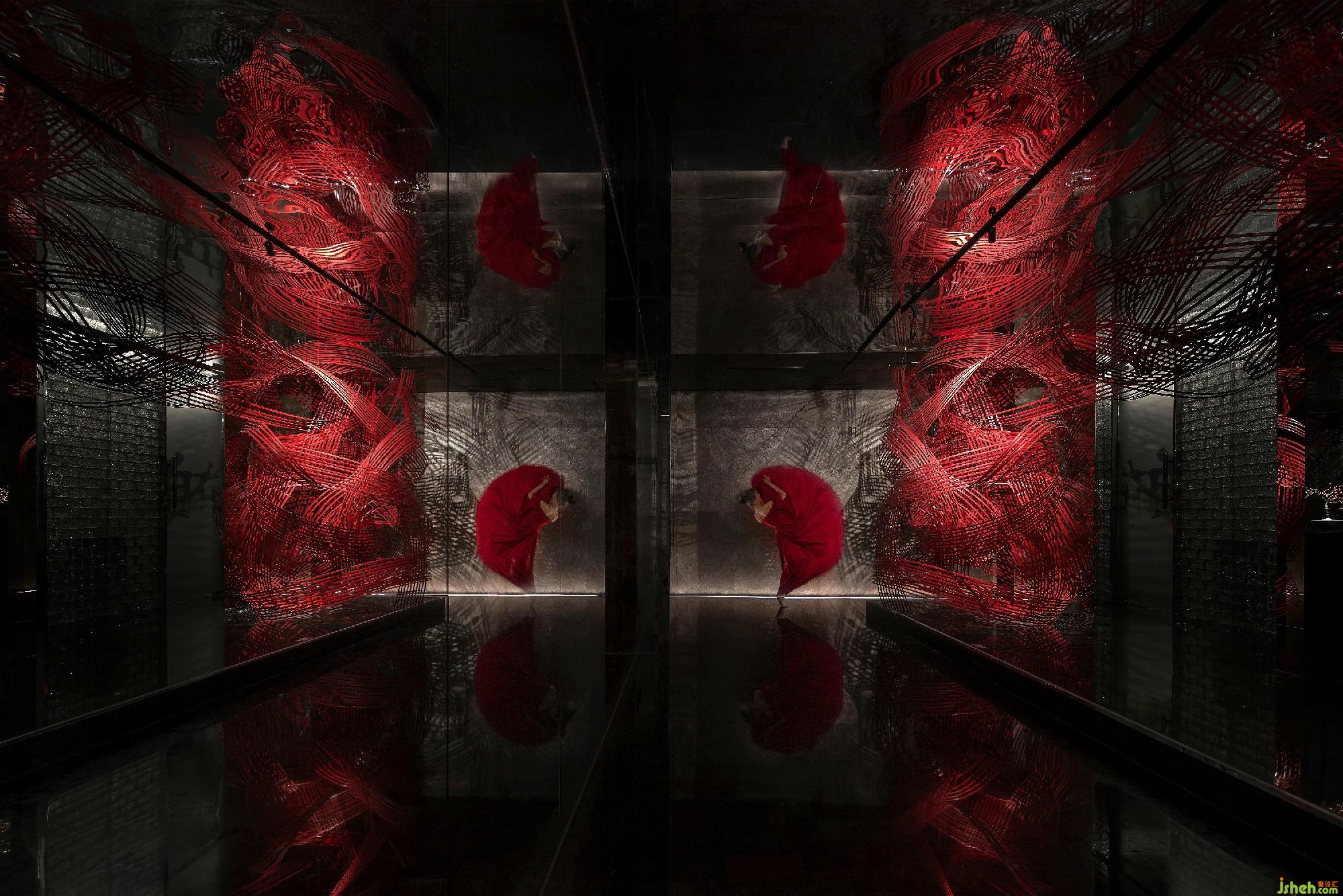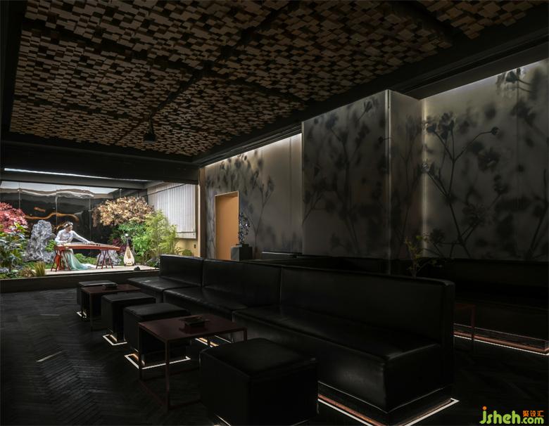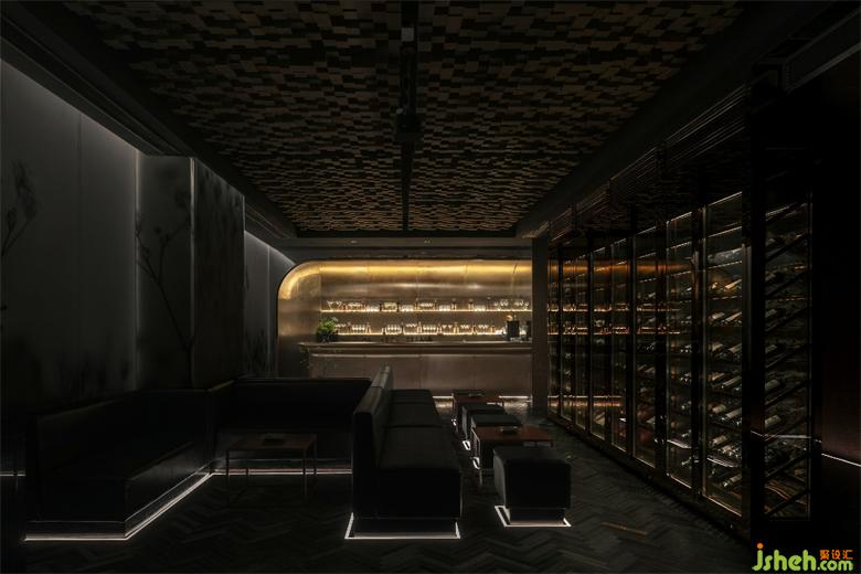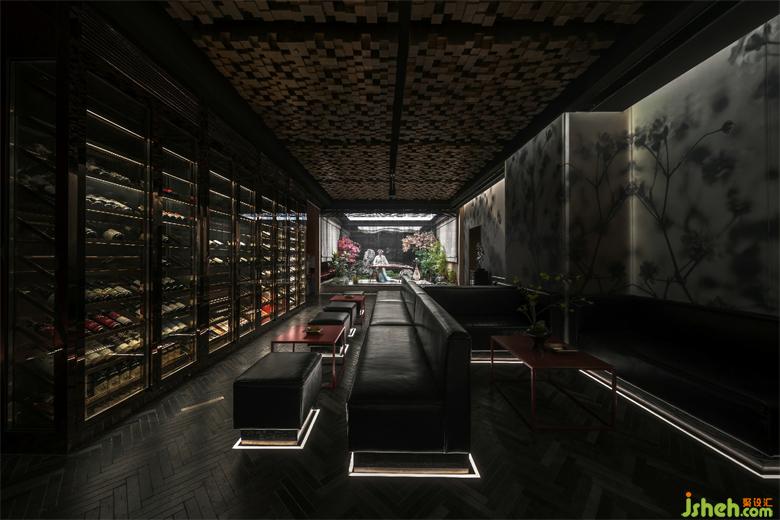 The lobby is divided into three areas, that is, refreshment area, wine area and private room. According to the business hours and regional characteristics, the three areas have their own beautiful scenery. The wall decoration of the refreshment area is with Chinese carved fence, supplemented by dim light to highlight the deep and secluded feeling. The partition of the tea-house is separated by a red glass wall. The harmony of the use of new artistic techniques and traditional elements makes the space full of new vitality.