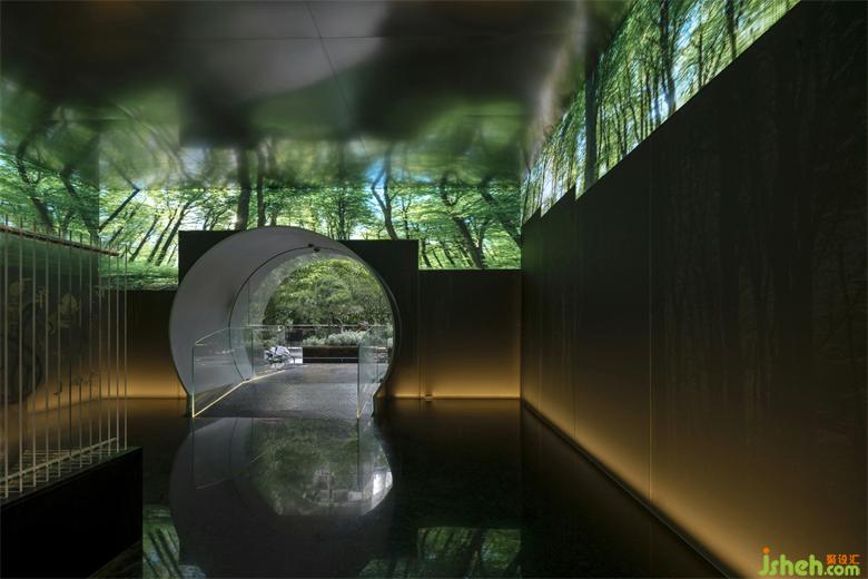 "Space doesn’t mean the boundary of beauty, but the beauty itself". The vestibule, also called the Four Seasons Hall, is like a bridge between the inside and the outside. The natural vegetation does not disappear immediately when diners enter into the hall, but merging with modern decorations. The designer installed a 360°LED screen on the wall where the vegetation can show the change of the four seasons over time, from lush green to fully dyed autumn color, echoing with the business philosophy of Natural Appeal Restaurant that taking seasonal materials to cook seasonal health food, and using artificial objects to vividly express the ancient wisdom of getting along with nature.